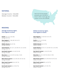 Local demand, local cost of living, licensing requirements, and tenure all factor into salaries. It’s interesting to note that average incomes in the nation’s center were relatively consistent. Professionals whose total annual income is below the median in their region may want to look at job opportunities that pay more and/or ask their employer for a salary increase. Your level of engagement where you currently work and personal life factors should be carefully weighed before considering changing jobs for higher pay alone.